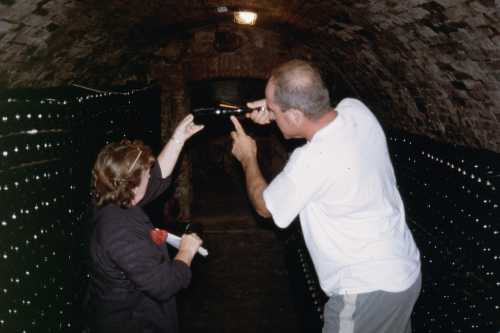 The sediment is the central problem of Champagne production. The gas pressure in the bottle is now between five and six atmospheres, and we all know how a bottle of bubbly can erupt if it is opened carelessly. So how do you get all the sediment out but retain the gas, without which it would not be Champagne? IOne false move will throw up a cloud of fine particles that takes months to settle again.